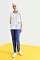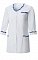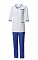 Женский медицинский костюм “Ольга” бело-василькового цвета предназначен для использования в качестве униформы медработников.