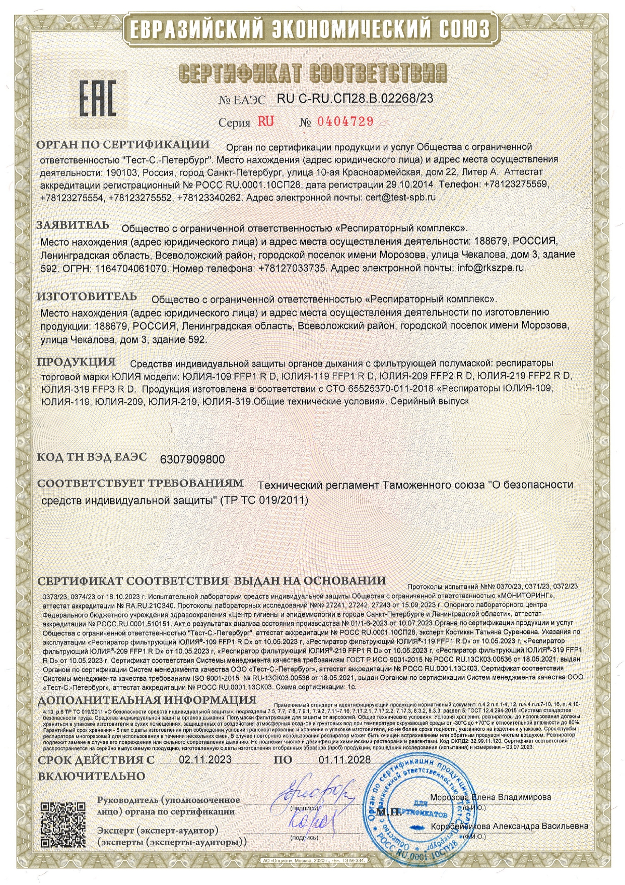 Респиратор "Юлия" 209 защищает дыхательную систему работника от вредного воздействия высокодисперсных и среднедисперсных аэрозолей (концентрация не более 12 ПДК).