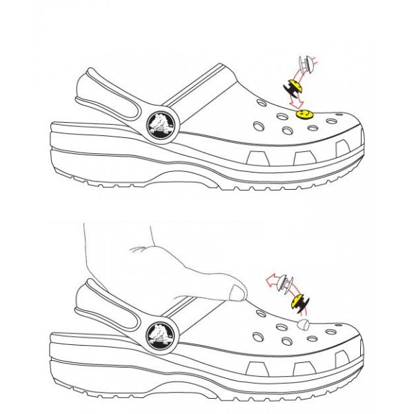 Jibbitz™ крепятся в специально предназначенные отверстия в верхней части сабо.